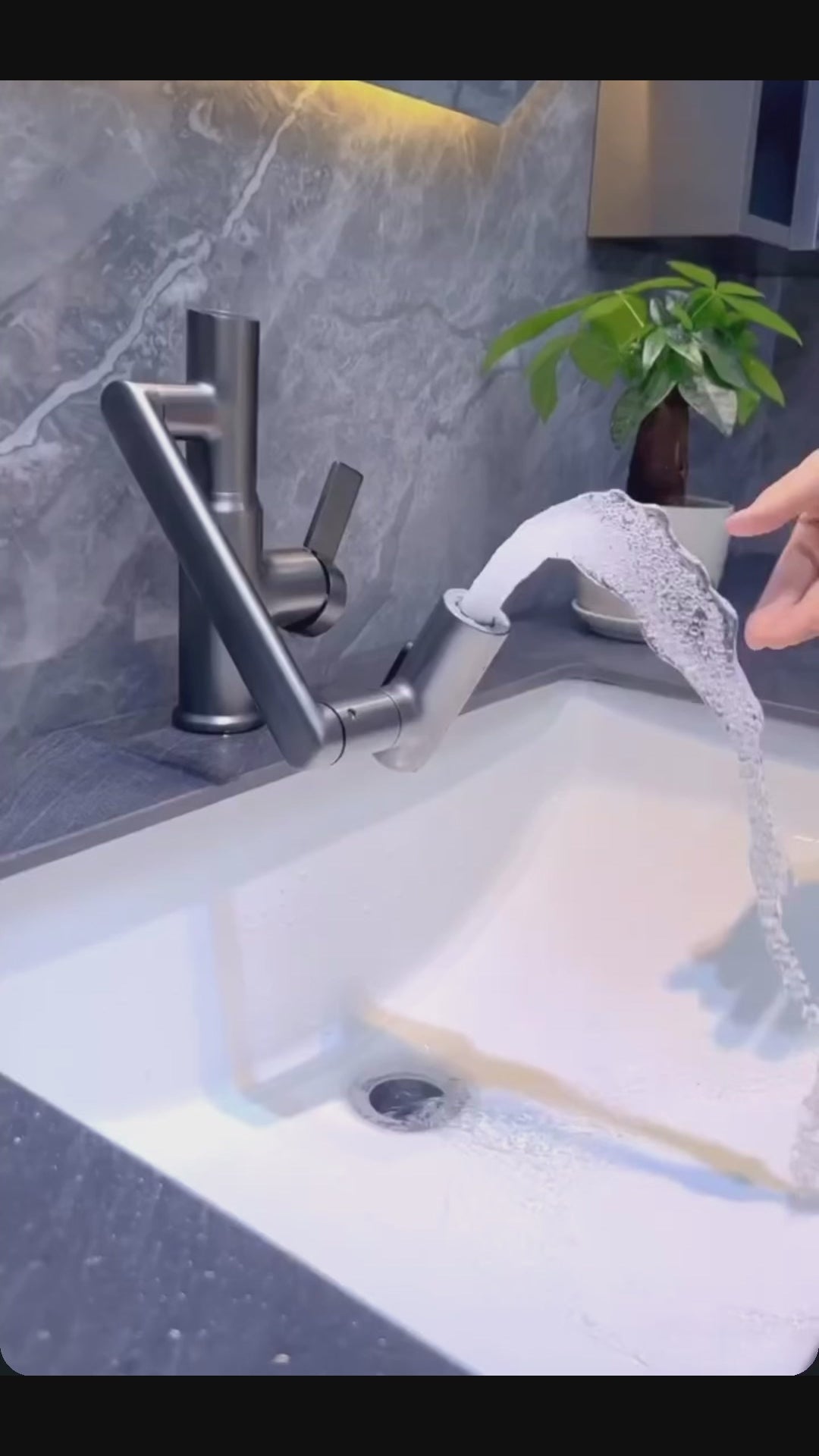Dirigez le jet d’eau où vous voulez : lavage du visage, rinçage du lavabo, remplissage d’un récipient — tout devient plus simple.